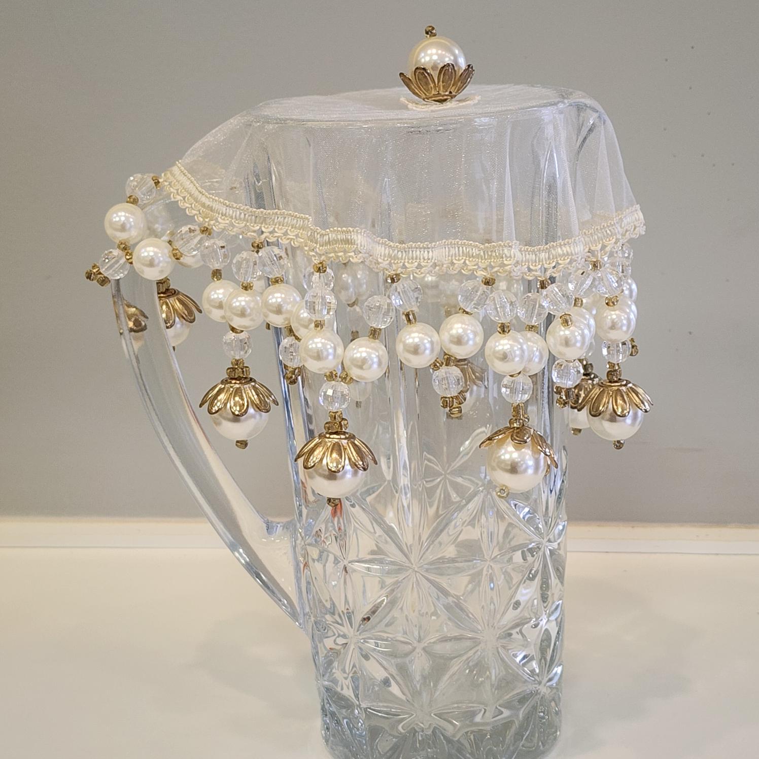 Cobre jarras artesanal, com todo o contorno em pedrarias e pérolas , uma peça super diferente e sofisticada para dar um toque especial a sua mesa.