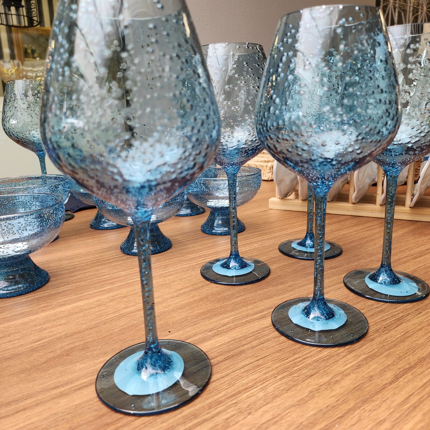 CONJUNTO DE 06 TAÇAS BUBBLE AZUL EM ACRÍLICO