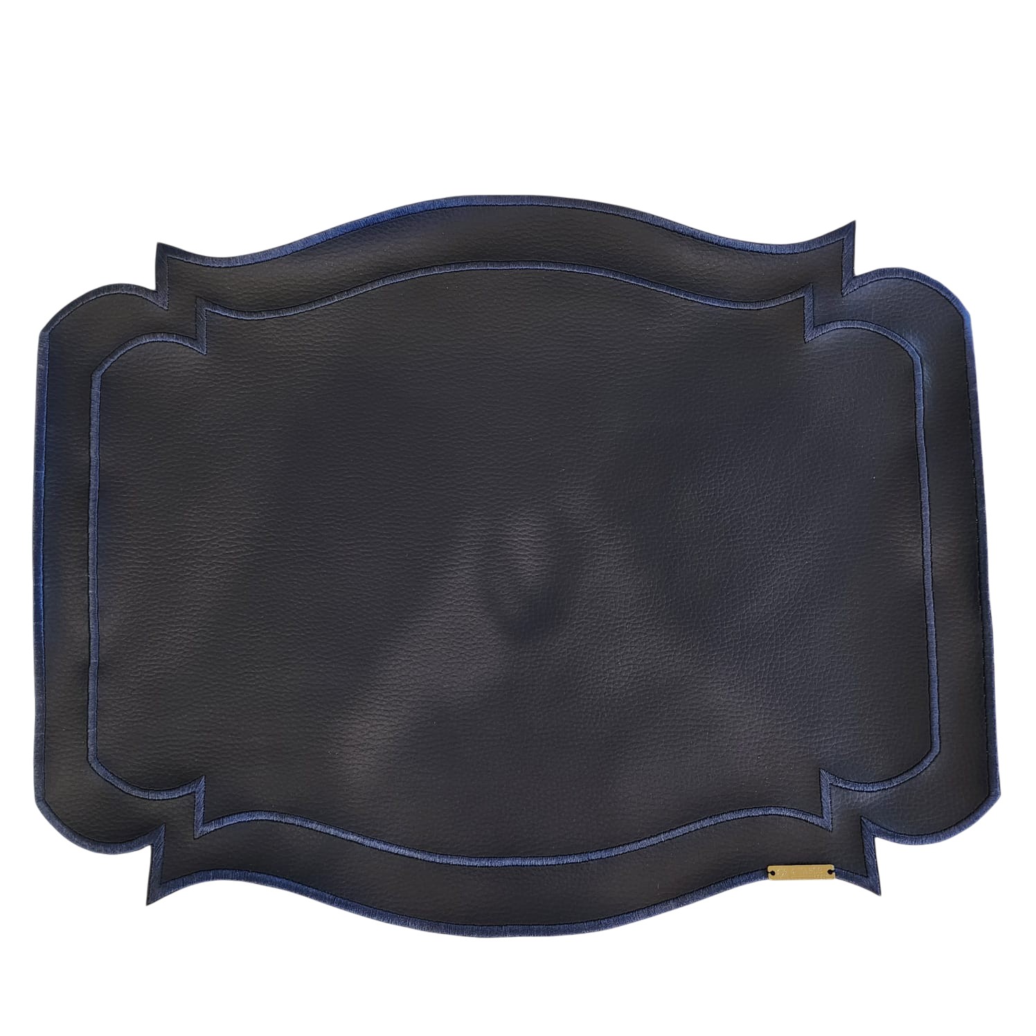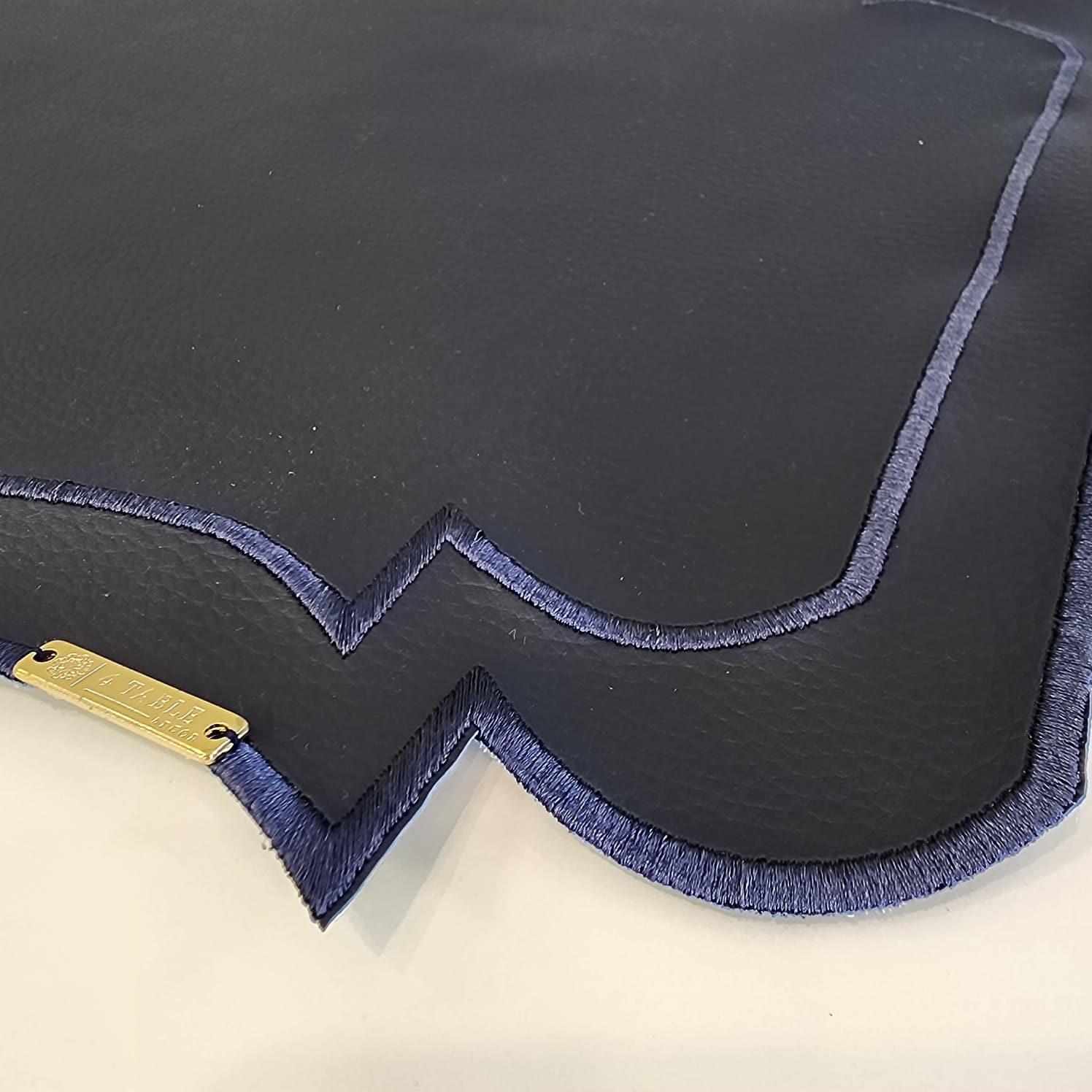 JOGO AMERICANO COM BORDA DESENHADA, AZUL MARINHO, COM BORDADO AZUL MARINHO NO MESMO TOM, UM LUXO!!!
