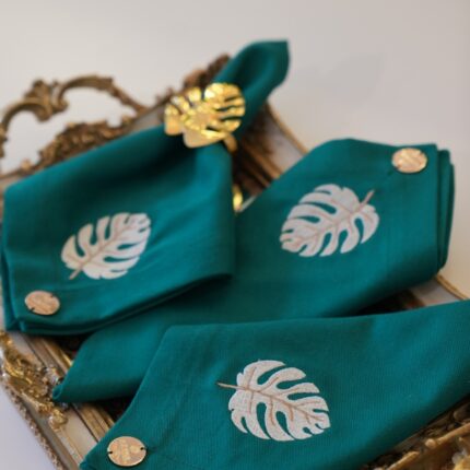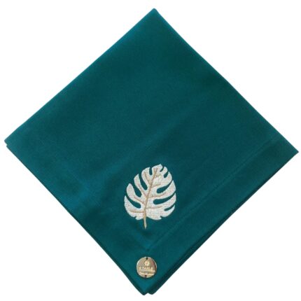 GUARDANAPO BRANCO BORDADO CORAL AZUL